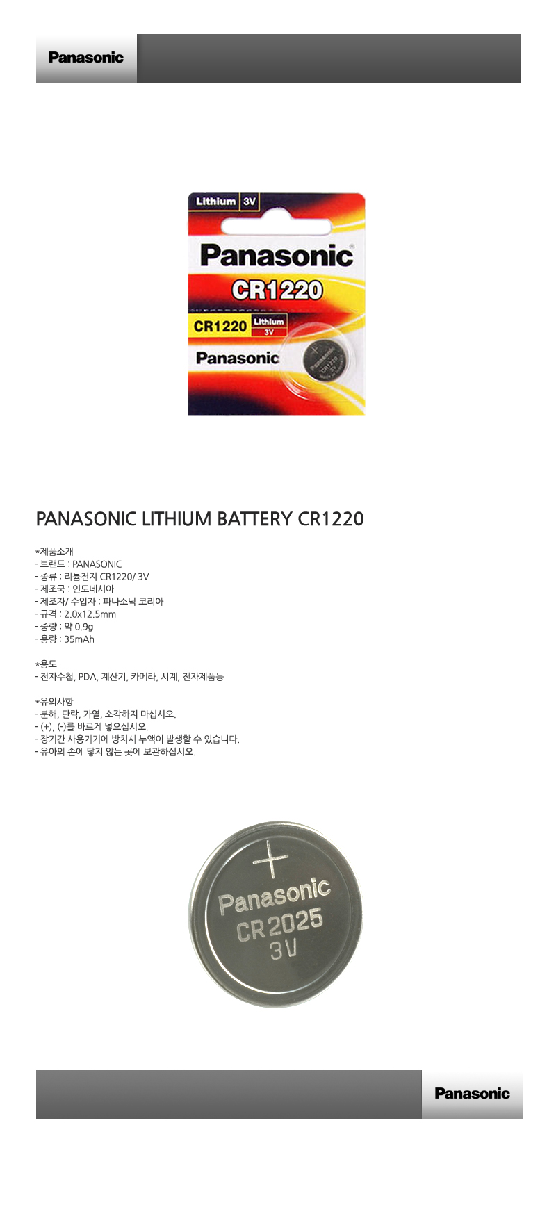 ÆÄ³ª¼Ò´Ð ¸®Æ¬ÀüÁö CR1220 3V(¨ª12xH2mm) |