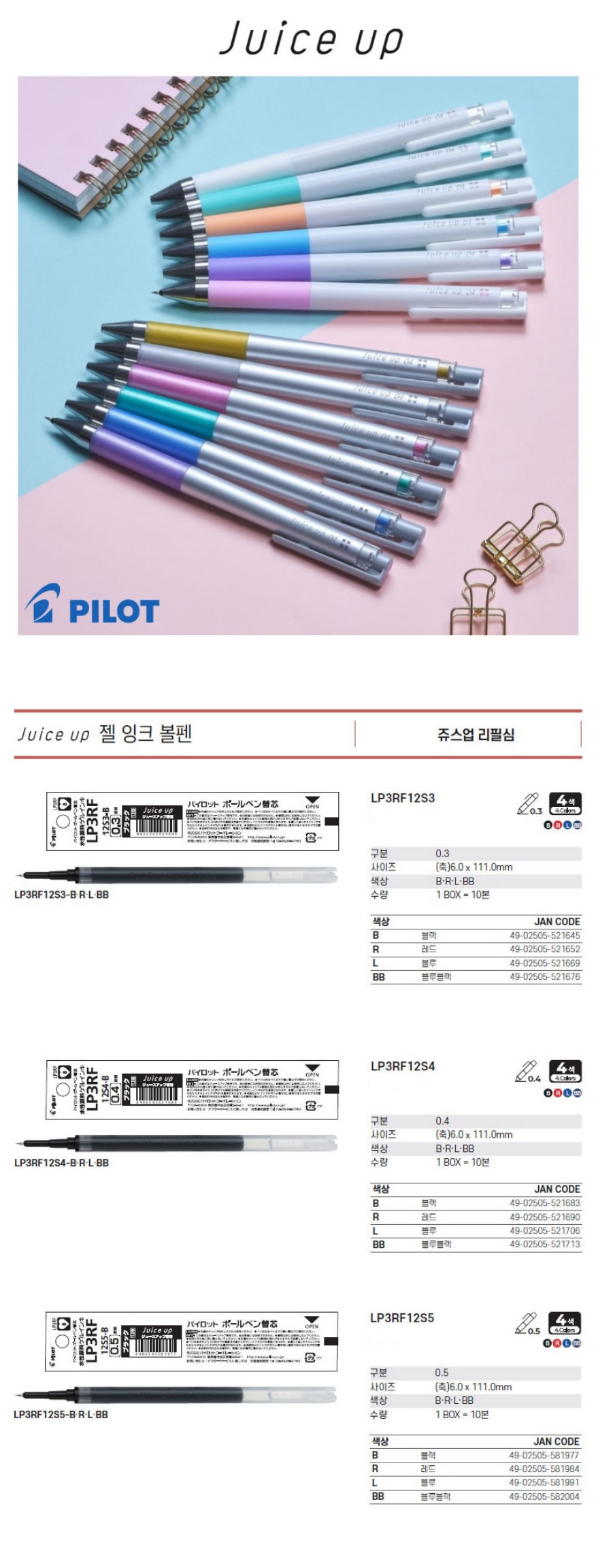 PILOT Á꽺¾÷ 0.4mm Àû»ö ¸®ÇÊ½É |