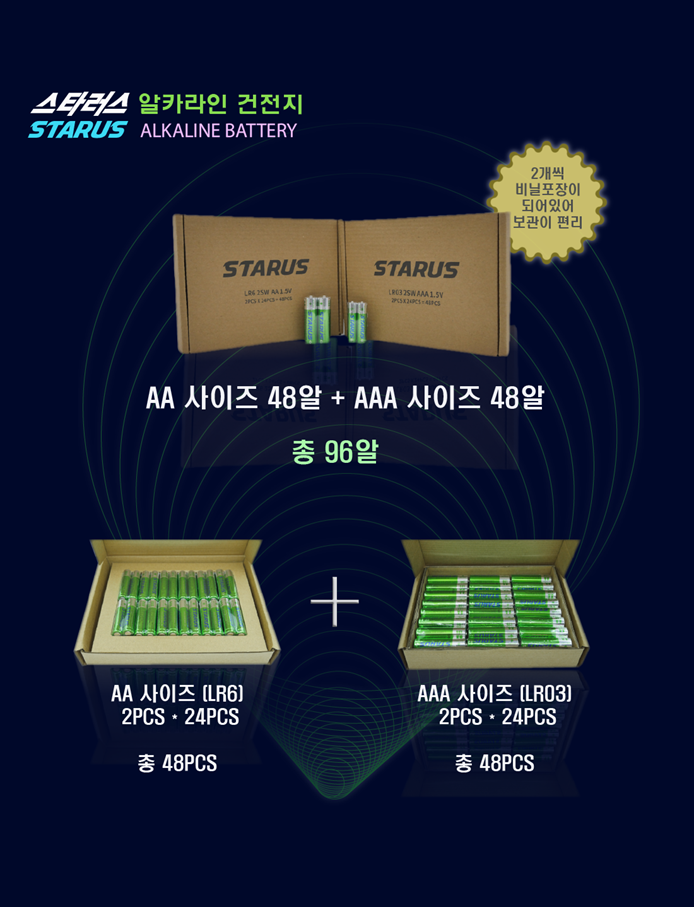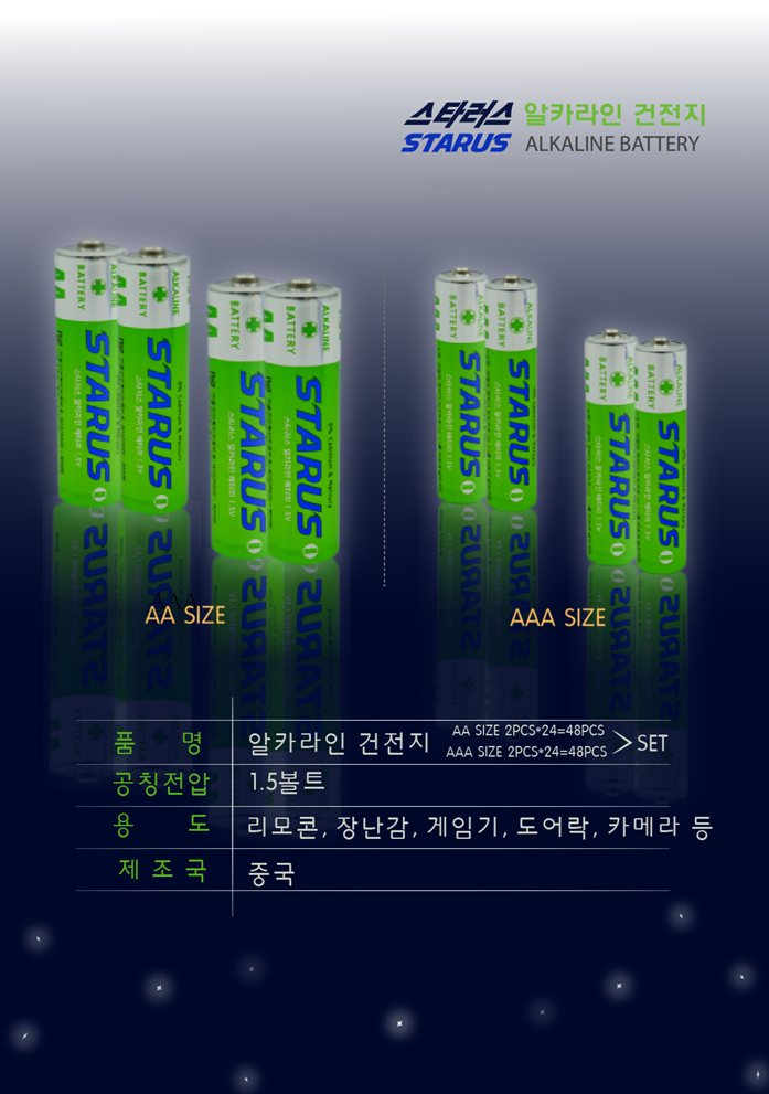 [¾Æ¼º¼Ö·ç¼Ç] ½ºÅ¸·¯½º(STARUS) ¾ËÄ«¶óÀΰÇÀüÁö AA(LR06) 1.5V / 2*24=48°³ÀÔ[24Á¶] |