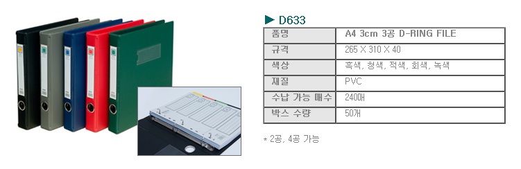´ëÈï 3°ø D¸µ¹ÙÀδõ A4 30mm Èæ»ö D633 |