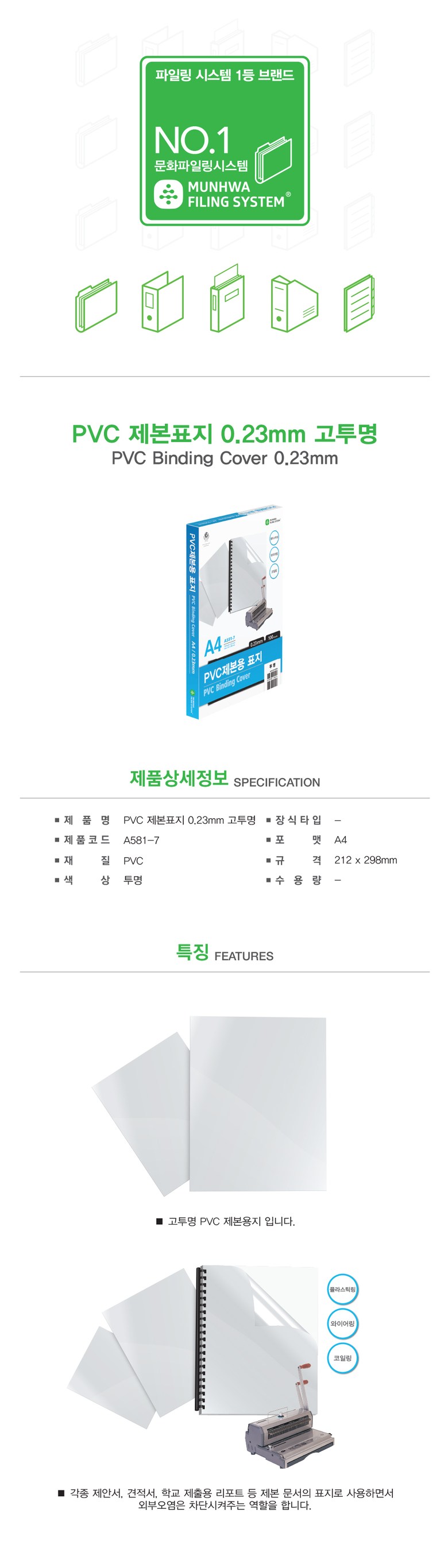¹®È A4 PVC Á¦º»¿ëÇ¥Áö 0.23mm Åõ¸í 100¸Å/1±Ç A581-7 |