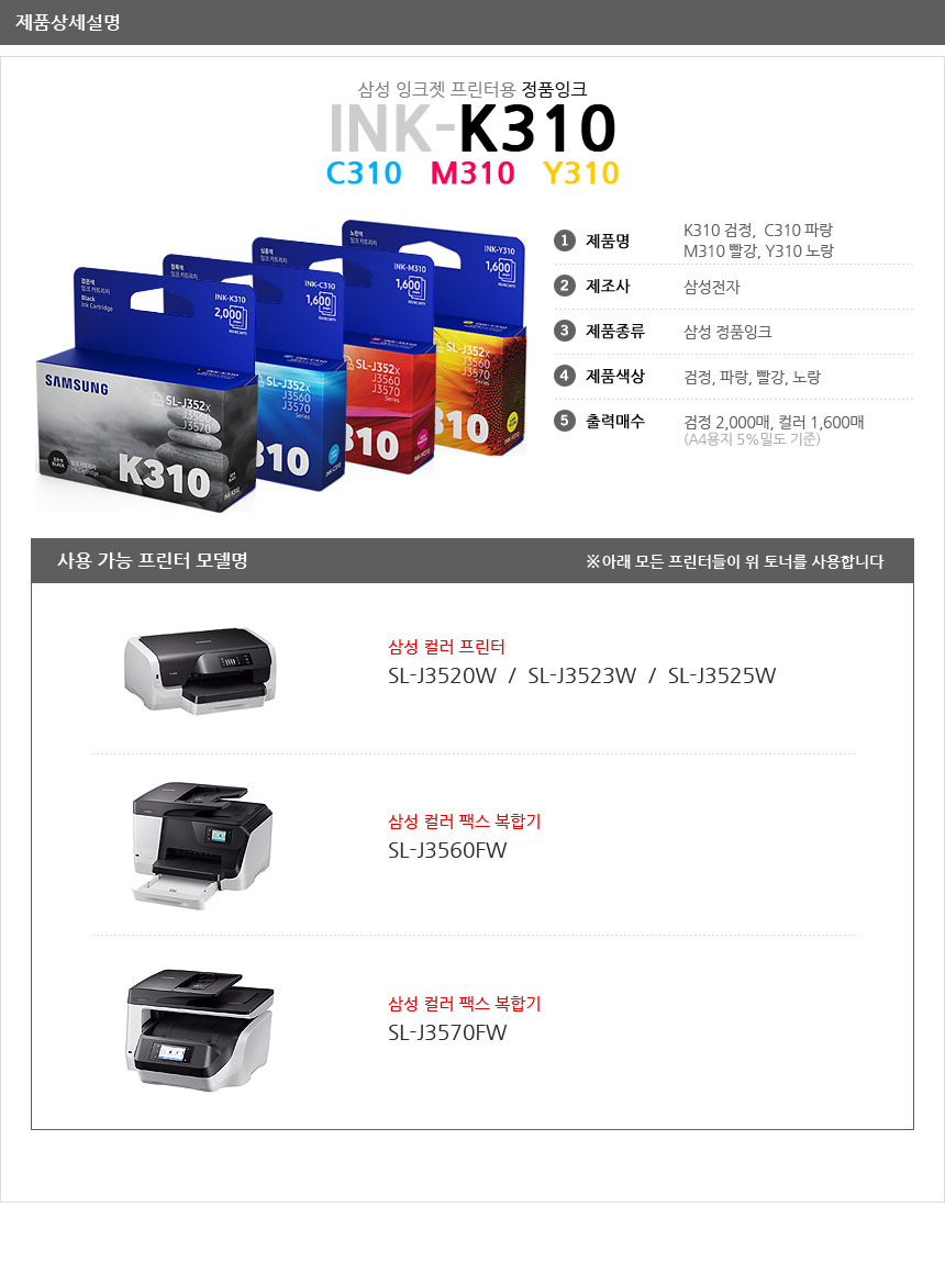 »ï¼º K310 Á¤Ç° À×Å© °ËÁ¤ [INK-K310] |