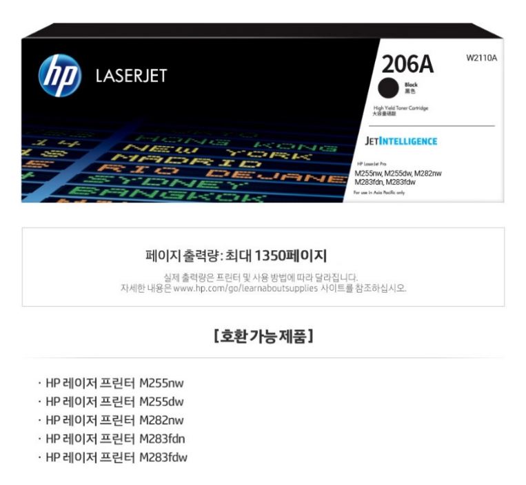 HP NO.206A W2110A Á¤Ç° Åä³Ê °ËÁ¤ |