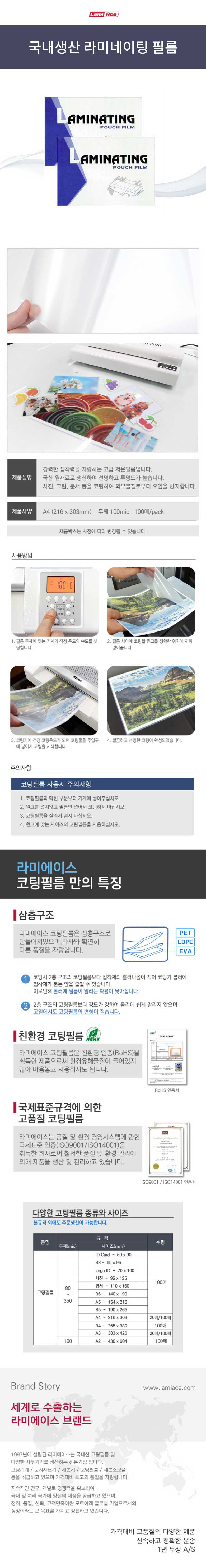 ¶ó¹Ì³×ÀÌÆÃ ÄÚÆÃÇʸ§A4 (216*303mm) 100mic(100¸Å) |